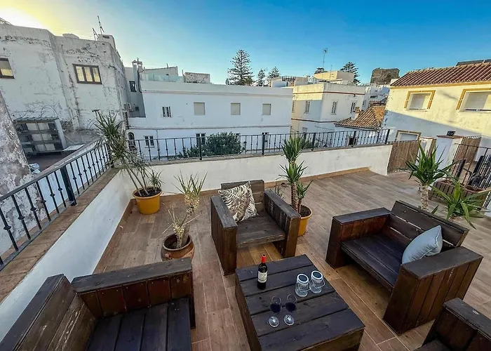 The 60 m² Terraza Del Sol - Old Town Tarifa Apartment is located 200 metres from the fortified Mudéjar Puerta de Jerez and nearly a 25-minute walk from the Strait of Gibraltar Natural Park. Staying in this apartment, nestled in close proximity to the historical fortress "Castle of Tarifa", guests can relax on a terrace.